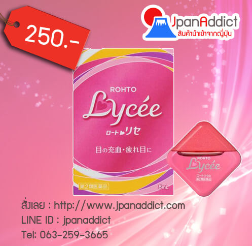 Rohto Lycee ด้วยส่วนผสมของTetrahydrozoline hydrochloride ช่วยทำความสะอาดดวงตา บำรุงสายตาที่อ่อนล้า ลดความระคายเคือง ช่วยรักษาและป้องกันโรคตาแดง เหมาะมากสำหรับคนที่ทำงานหน้าคอมพิวเตอร์ ใช้สมาร์ทโฟนเป็นเวลานานๆ หรือผู้ที่ทำงานกลางแดด อยู่ในบริเวณที่มีแสงจ้า ลดการถูกทำลายของดวงตาจากแสงยูวี รวมทั้งเหงื่อที่ไหลเข้าตา ฝุ่นควันละอองมลพิษในอากาศ และยังเหมาะกับผู้ชอบออกกำลังกายกีฬาทางน้ำ เช่นว่ายน้ำ รวมทั้งผู้ที่ใส่คอนแทคเลนส์เป็นเวลานานๆ Rohto Lycee น้ำยาหยอดตาสูตรธรรมดา ความเย็นระดับ 3 ยังมีวิตามิน บี 12 ให้ความชุ่มชื่นกับดวงตา ช่วยเพิ่มออกซิเจนให้ดวงตา กระตุ้นการไหลเวียนโลหิตของดวงตา และปรับโฟกัสให้ดวงตา ทำให้เห็นชัดเจนและดวงตาสดใจขึ้นทันที่หลังหยอดตาอีกทั้งมีขนาดเล็กพกพาสะดวก กลิ่นกุหลาบ