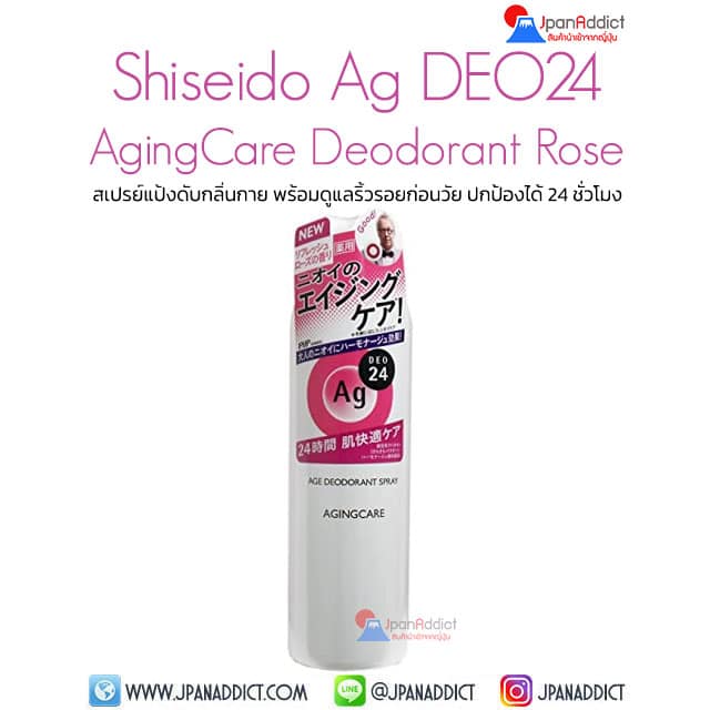 Shiseido Ag DEO24 Aging Care Deodorant Refresh Spray Rose 135g สเปรย์แป้งดับกลิ่นกาย Published ธันวาคม 16, 2021 at 640 × 640 in Shiseido Ag DEO24 Aging Care Deodorant Refresh Spray Rose 135g สเปรย์แป้งดับกลิ่นกาย พร้อมดูแลริ้วรอยก่อนวัย