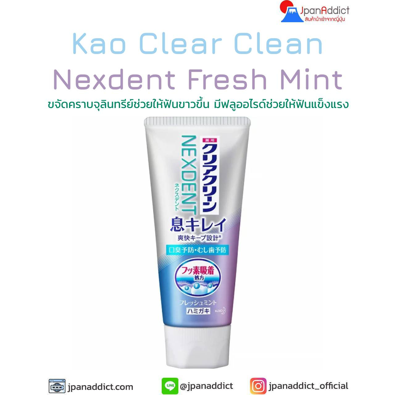 Kao Clear Clean NEXDENT Whitening Fresh Mint เผยแพร่ มีนาคม 17, 2025 ที่ 1280 × 1280 ใน Kao Clear Clean NEXDENT Whitening Fresh Mint 120g ยาสีฟันญี่ปุ่น สูตรฟันขาว ป้องกันฟันผุ
