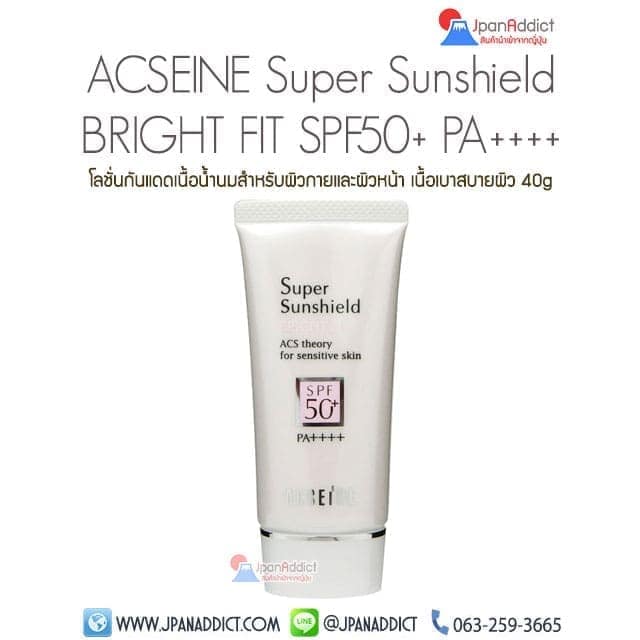 ACSEINE Super Sunshield BRIGHT FIT SPF50+ PA ++++ ครีมกันแดด สำหรับคนแพ้ง่าย กันแดดเนื้อเบาสบายผิว เนื้อน้ำนมจะแตกตัวคล้ายน้ำในทันทีเมื่อทาครั้งแรก จึงไม่ทิ้งสัมผัสเหนียวเหนอะ