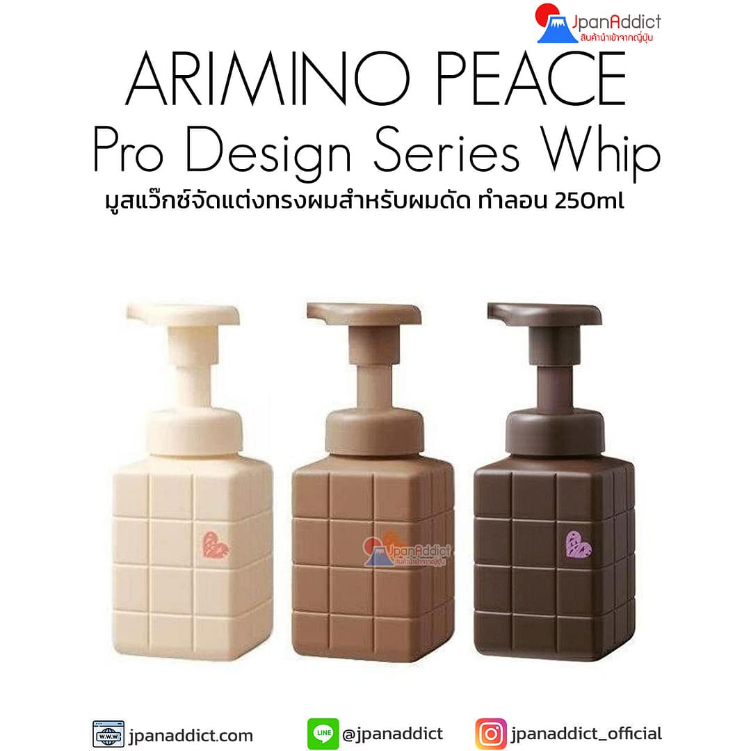 ARIMINO PEACE Pro Design Series Whip 250ml มูสแว๊กซ์จัดแต่งทรงผมสำหรับผมดัด ทำลอน ให้ผลลัพธ์ที่เป็นธรรมชาติ เหมาะสำหรับการใช้ในชีวิตประจำวัน ขึ้นรูปและขึ้นรูปได้ง่ายโดยไม่มีสารตกค้างหรือความแข็ง เหมาะสำหรับทุกสภาพเส้นผม