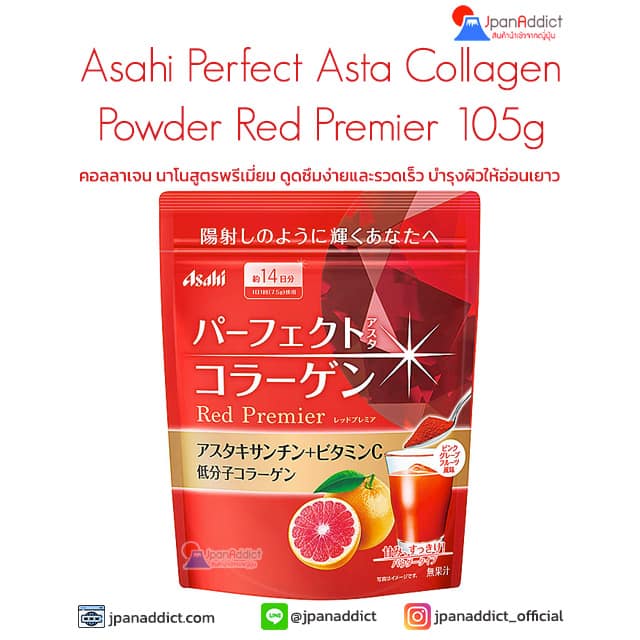 Asahi Perfect Asta Collagen Powder Red Premier 105g คอลลาเจน นาโนสูตรพรีเมี่ยม ดูดซึมง่ายและรวดเร็ว บำรุงผิวให้อ่อนเยาว กระจ่างใส ชุ่มชื้น กระชับ เต่งตึง ยึดหยุ่น เนียนนุ่ม