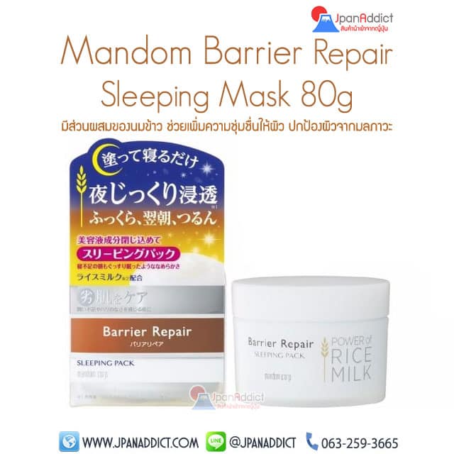 Mandom Barrier Repair Sleeping Mask 80g มีส่วนผสมของนมข้าว ช่วยเพิ่มความชุ่มชื่นให้ผิว