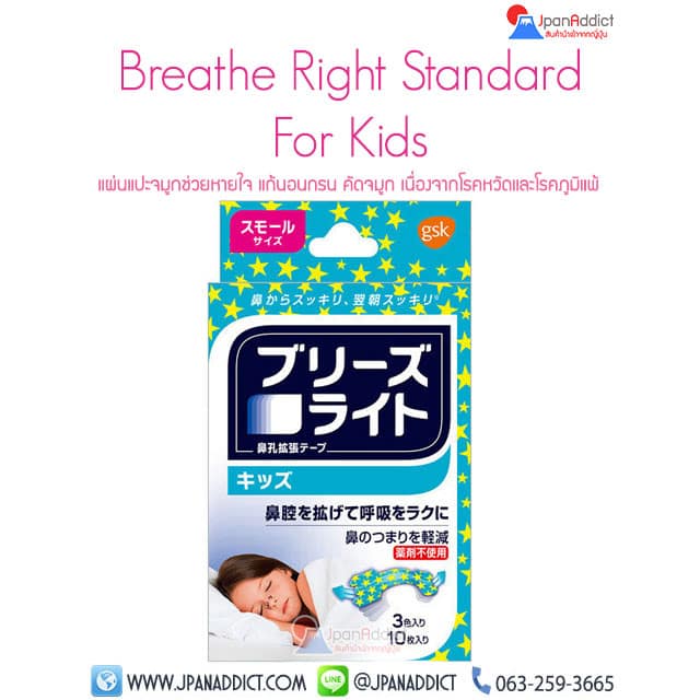 Breathe Right Standard For Kids แผ่นแปะจมูก ช่วยหายใจ แก้อาการนอนกรน และ คัดจมูก หวัด หรือ ภูมิแพ้ สำหรับเด็ก