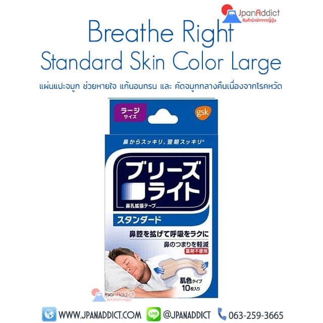 Breathe Right Standard Skin Color Large แผ่นแปะจมูก ช่วยหายใจ แก้อาการนอนกรน