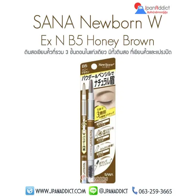 Sana New Born EX Eyebrow B5 Honey Brown ดินสอเขียนคิ้ว 3in1 ดินสอ ที่เขียนคิ้วและแปรงปัด