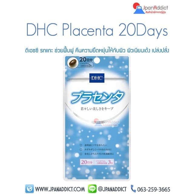 DHC Placenta พลาเซนต้า รกแกะ สำหรับ 20วัน ช่วยฟื้นฟู คืนความยืดหยุ่นให้กับผิว ผิวเนียนเด้ง ช่วยฟื้นฟู คืนความยืดหยุ่นให้กับผิว ช่วยให้ผิวเนียนเด้ง กระชับ ลดเลือนริ้วรอย และคืนความอ่อนเยาว์ให้กับผิว