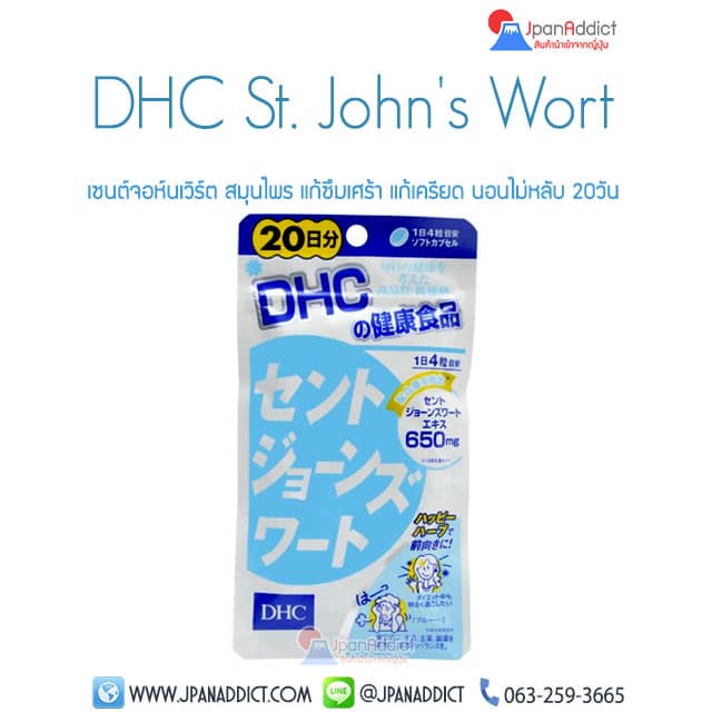 DHC St John’s Wort 20Days เซนต์จอห์นเวิร์ต แก้ซึมเศร้า แก้เครียด นอนไม่หลับ 20วัน ช่วยยับยั้งการผลิตฮอร์โมนที่ทำให้เกิดความเครียด สำหรับผู้มีอาการนอนไม่หลับ ผู้มีอาการซึมเศร้าระดับอ่อน ลดอาการปวดประจำเดือน