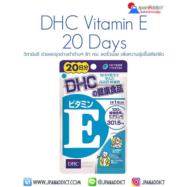 DHC Vitamin E 20วัน วิตามินอี ช่วยลดจุดด่างดำต่างๆ ฝ้า กระ ลดริ้วรอย เพิ่มความชุ่มชื้นให้แก่ผิว
