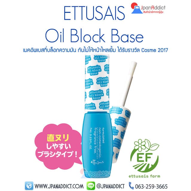 Ettusais oil block base เมคอัพเบสที่บล็อคความมัน ไม่ให้หน้าเยิ้ม โบกมือลากระดาษซับมันได้เลย เนื้อครีมบางๆ ไม่หนักหน้า สามารถใช้ได้ทั้งก่อนและหลังแต่งหน้า เปรียบเสมือน Skin care ผู้ที่ไม่อยากแต่งหน้า แต่ไม่อยากให้หน้ามันก็สามารถลงเบสบล็อคความมันตัวนี้ได้ คุณสมบัติเข้าไปดูดซับความมันหรือบล็อคความมันไม่ให้ไหลจนหน้าเยิ้ม