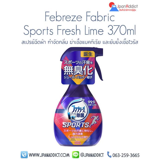 Febreze Fabric Double Sanitization 370ml สเปรย์ฉีดผ้า ช่วยกำจัดแบคทีเรีย ที่เป็นสาเหตุของกลิ่นอับชื้นบนผ้า สารสกัดจากข้าวโพดสามารถแทรกซึมลงสู่เนื้อผ้าได้เป็นอย่างดีเพื่อช่วยกำจัดแบคทีเรียที่เป็นสาเหตุของกลิ่นอับชื้นบนผ้า สูตรประกอบด้วยสารแอนตี้แบคทีเรีย ซึ่งเป็นสารสกัดจาก ข้าวโพด แทรกซึมลงสู่เนื้อผ้าตรงเข้าจับโมเลกุลของกลิ่นเหม็นต่างๆ เช่น กลิ่นบุหรี่ กลิ่นอาหาร กลิ่นกายกลิ่นเท้า เป็นต้น ใช้สารสกัดจากธรรมชาติ เหมาะสำหรับผ้าทุกชนิด เหมาะสำหรับใช้กับผ้าม่าน, พรม, รองเท้า, ผ้าปูที่นอนและฟูก, โซฟา,เสื้อผ้า, หมวกกันน็อค, เบาะรถยนต์,ฯลฯ