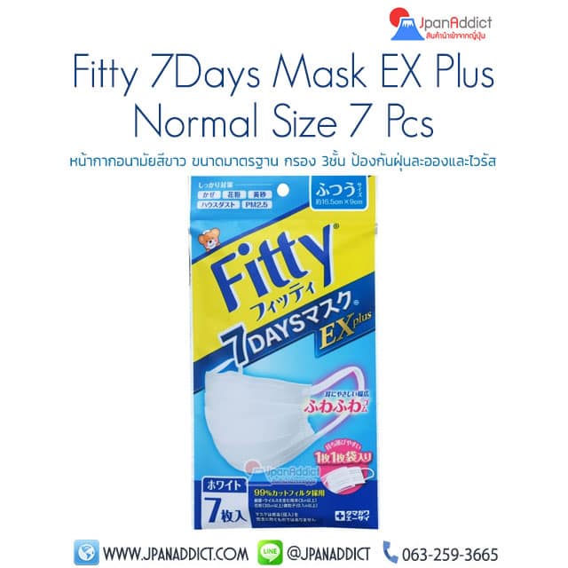 Fitty 7Days Mask EX Plus Normal Size 7 Pcs หน้ากากอนามัย ขนาดมาตรฐาน กรอง 3ชั้น ป้องกันฝุ่น PM2.5 และ ไวรัส99%