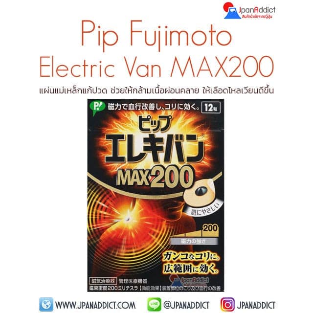 Pip Fujimoto Electric Van MAX200 แผ่นแม่เหล็กแก้ปวดญี่ปุ่น กอเอี๊ยะแม่เหล็ก ตัวแม่เหล็กจะทำให้เลือดไหลเวียนดีขึ้นอย่างรวดเร็ว ช่วยให้กล้ามเนื้อผ่อนคลาย ซึ่งเป็นการรักษาเป็นที่นิยมในประเทศญี่ปุ่น