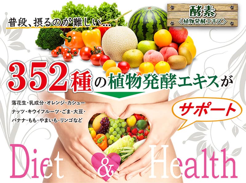 Plant type lactic acid bacteria (K-1) · Dokudami · Black ginger · Ketsumeishi · Candle bush · Akamegashiwa formulation in 352 kinds of enzymes <plant fermentation extract powder>.MCT oil of middle-chain fatty acid which is more likely to be energy and has good digestion and absorption · Patent component to increase absorbency Supports natural diet with