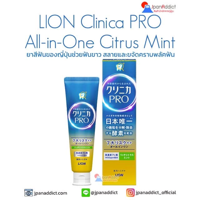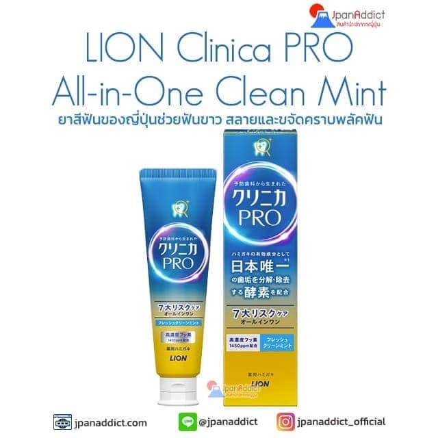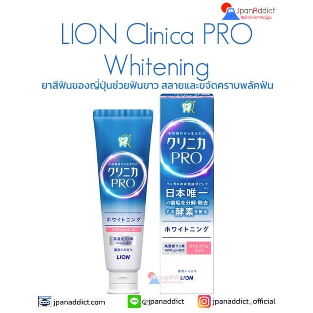 LION CLINICA PRO Toothpaste 95g ยาสีฟันชนิดเดียวในญี่ปุ่นที่มีเอนไซม์ ช่วยสลายและกำจัดคราบพลัค