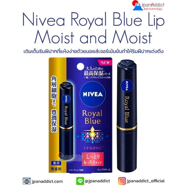 Nivea Royal Blue Lip Moist and Moist ลิปบาล์ม เติมเต็มริมฝีปากที่แห้งง่ายด้วยมอยส์เจอร์เข้มข้น
