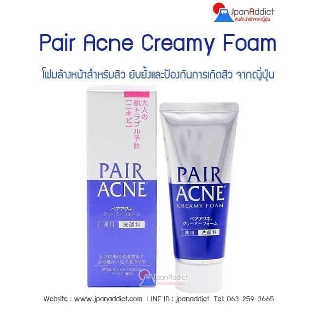 Pair acne creamy foam ครีมโฟมล้างหน้า สูตรอ่อนโยน ช่วยชำระล้างสิ่งสกปรกต้นเหตุของปัญหาสิวได้อย่างลำลึก พร้อมให้ความนุ่มชุ่มชื่นแก่ผิวไม่แห้งตึง ด้วยสารสกัดเอกสิทธิเฉพาะ Pair acne creamy foam โฟมเนื้อละเอียดamilite เข้าทำความสะอาดผิวอย่างอ่อนโยนโดยเนื้อโฟมจะเข้าแทรกซึมเข้าสู่ผิวชั้นนอกและชั้นในและ, สารสกัดจากถั่วเหลือง,วิตามินซี ช่วยให้ความนุ่มชุ่มชื่นแก่ผิว พร้อมสาร isopropyl methyl phenol ช่วยฆ่าเชื้อโรคและแบคทีเรียต้นเห็นของสิว สิวอุดตันและ dipotassium glycyrrhizin ช่วยลดอาการอักเสบของผิวและสิวอักเสบ