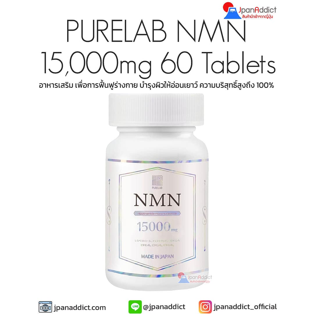 PURELAB NMN 15,000mg 60 Tablets อาหารเสริม เพื่อการฟื้นฟูร่างกาย บำรุงผิวให้อ่อนเยาว์ มีส่วนประกอบของ NMN สูงถึง 15,000mg ความบริสุทธิ์สูงถึง 100% พร้อมคุณประโยชน์ต่อสุขภาพมากมาย พร้อมด้วยส่วนผสมหายากอื่นๆ อีกมากมาย ซึ่งมีผลในการบำรุงร่างกาย เสริมภูมิต้านทาน บำรุงผิวให้อ่อนเยาว์ ป้องกัน โรคอันตราย สินค้าจากประเทศญี่ปุ่น มั่นใจ ปลอดภัย ได้มาตรฐานอาหาร