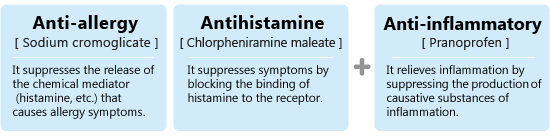 น้ำยาหยอดตาญี่ปุ่น ลดอาการแพ้ละอองเกสรดอกไม้ เป็นต้น ที่อาจทำให้เกิดอาการตาอักเสบได้ เพราะการอักเสบไม่เพียงทำให้เกิดอาการคันตา แต่ยังทำให้อาการแย่ลง เช่น ความรู้สึกของร่างกายแปลกปลอมและภาวะเลือดคั่งในเลือดสูง (ทำให้อาการแย่ลง)
