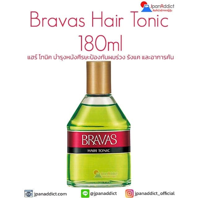 Shiseido Bravas Hair Tonic 180ml โทนิคยอดฮิตจากชิเซโด้ที่มีจำหน่ายตั้งแต่ปี1970 สำหรับสุภาพบุรุษยุค70 ช่วยให้เส้นผมเงางาม พร้อมบำรุงหนังศีรษะลดอาการคัน รังแค และผมร่วง พร้อมกลิ่นส้ม เพียงหยอดบนหนังศีรษะและนวดคลึงไม่ต้องล้างออก