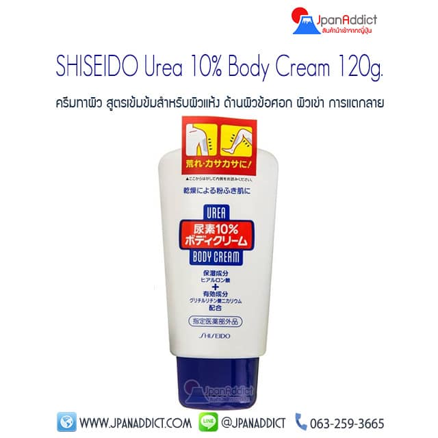 SHISEIDO Urea 10% Body Cream 120g.ครีมทาผิวจากแบรนด์ดังชิเซโด้สูตรเข้มข้นมาก สำหรับผิวแห้ง ด้าน อย่างเช่นผิวข้อศอก ผิวเข่า ก้น สะโพกป้องกันการแตกลายของผิว มีสารยูเรียเพื่อผิวชุ่มชื้น เนื้อครีมเนียนนุ่ม ทาแล้วให้ผิวชุ่มชื้นจริงๆๆ
