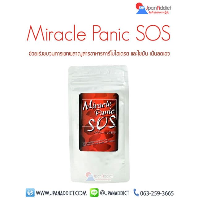 Miracle Panic SOS ช่วยเร่งการเผาผลาญคาร์โบไฮเดรต และไขมัน เน้นลดส่วนเอว เร่งขบวนการเผาผลาญสุดขีดด้วย Vitamin B2 ถึง 200% เป็นการลดน้ำหนักแบบใหม่ด้วยวิตามินล้วนๆ ร่างกายจะเล็กไปเองโดยที่คุณจะแปลกใจ