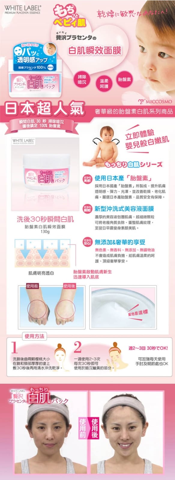 WHITE LABEL PREMIUM PLACENTA PACK 130g มาส์กหน้า ให้ผิวคุณแลดูกระจ่างใส